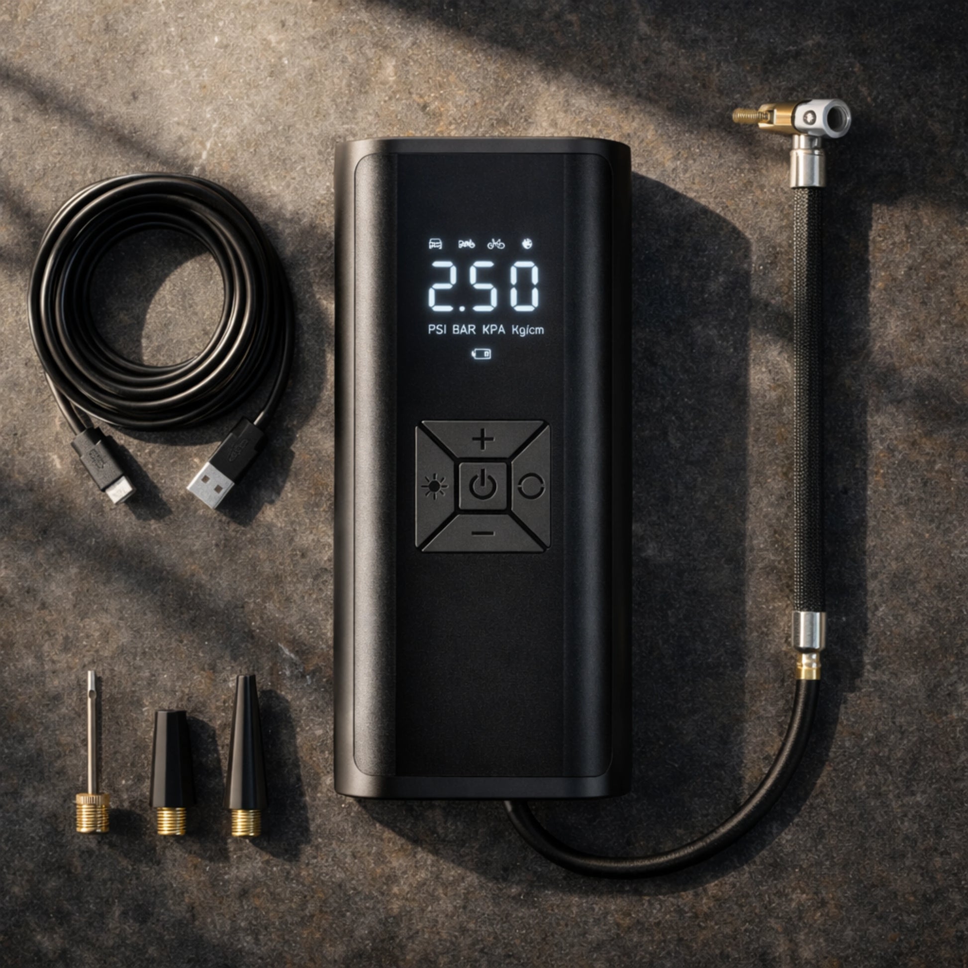 Configura el PSI exacto y deja que AirDrive se detenga solo al alcanzarlo. Evita errores, protege tus llantas y logra un inflado perfecto cada vez, sin cálculos, sin sobreinflar y con total control automático.