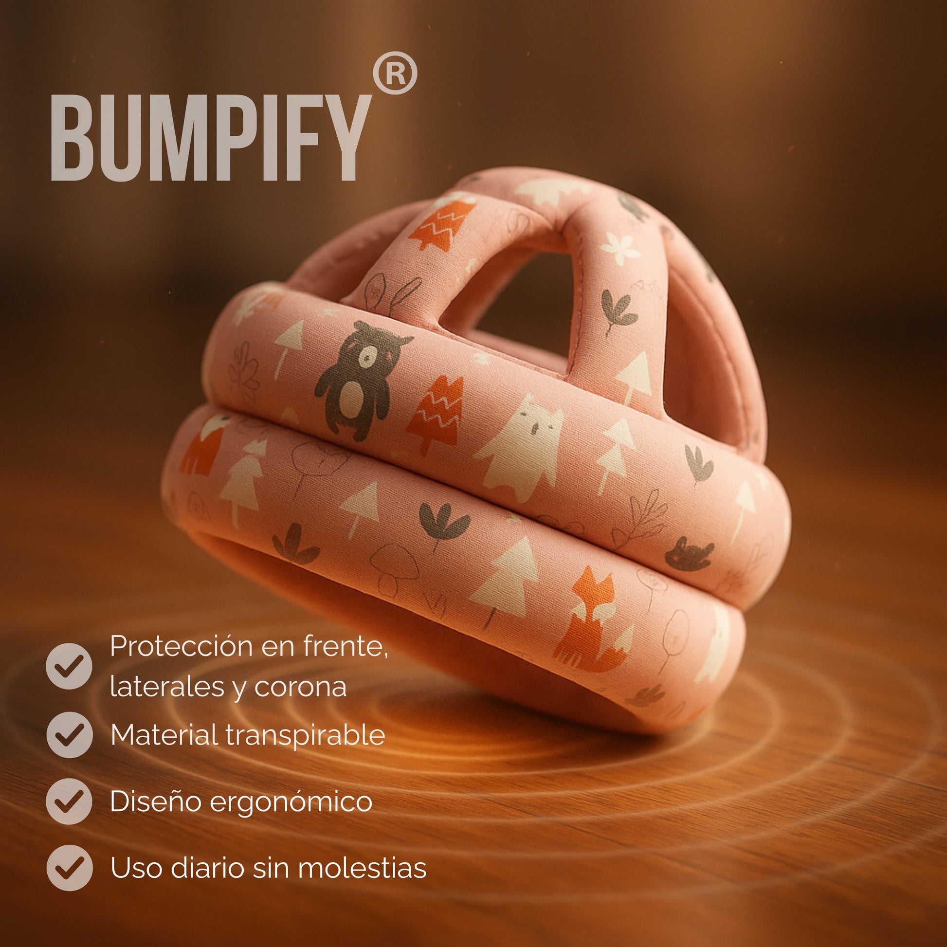 Su tejido de secado rápido y fácil lavado permite uso diario; el casco se mantiene limpio y listo mientras tu bebé explora. No necesitas supervisar cada pequeño traspié: Bumpify está ahí para suavizar la caída.