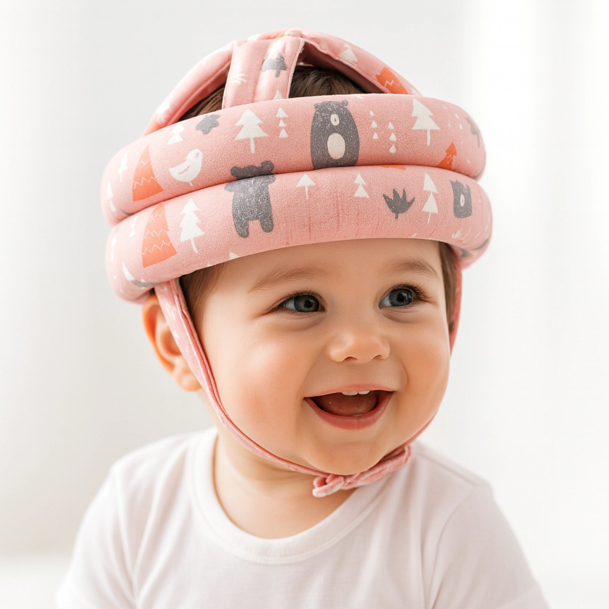 El diseño ergonómico de Bumpify envuelve la cabeza con tres capas de amortiguación ligera, reduciendo el riesgo de moretones por caídas comunes en gateo y aprendizaje de caminar. Su correa ajustable mantiene el casco en su lugar sin causar presión.